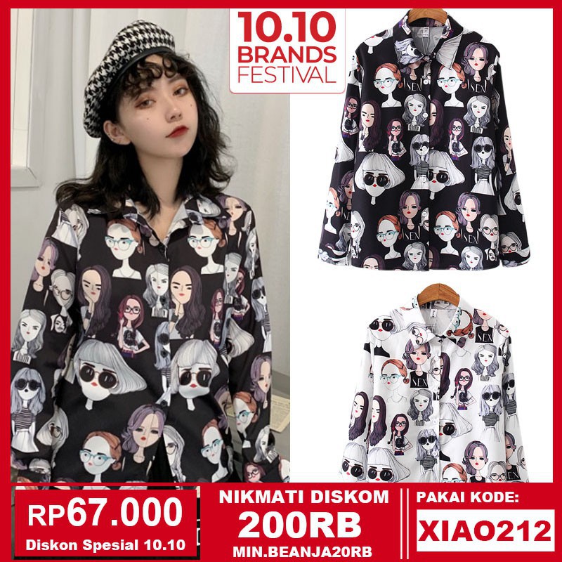 Beli kemeja retro vintage original lengan panjang/ pendek terbaru di shopee baju retro wanita. Ab863808 baju atasan kemeja retro lengan panjang wanita blouse korea import putih biru white blue.
