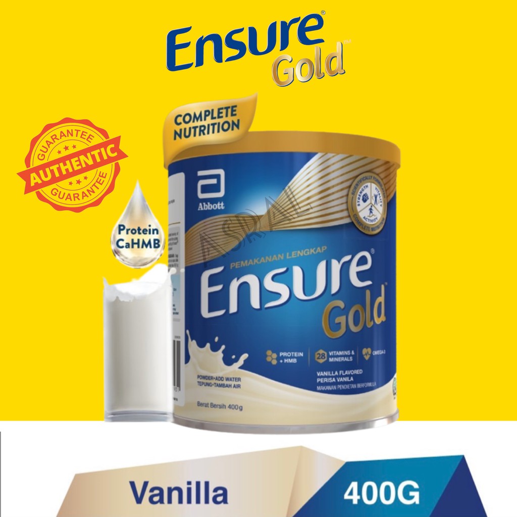 Ensure gold vanilla 2 x 850g + free gift, rm194.85. Kebaikan minuman susu ensure gold untuk orang tua. 3 kebaikan minum susu ensure gold !! Susu ensure, atau ensure gold, adalah rumusan susu yang diformulasi sebagai makanan tambahan yang boleh menolong menguatkan badan peminum dengan kandungan . Selain mencegah hilangnya massa otot di masa pemulihan pasca sakit, hmb sebagai fungsi susu ensure gold juga membantu mengembalikan massa otot yang hilang . Diskaun besar, senarai harga susu ensure malaysia terkini tahun.